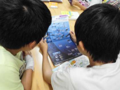 なんの本を読んでいるのかな?生き物の住んでいる海の様子や深さについて興味を持ったようですね。