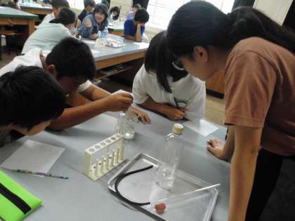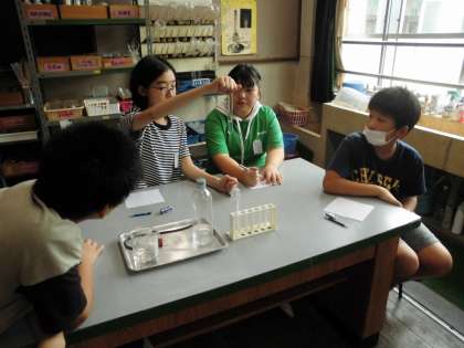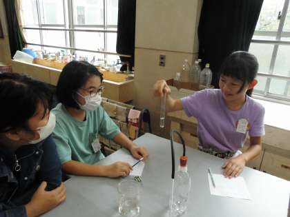 「水溶液の性質」の学習です。炭酸水に溶けているものを調べる実験をしました。