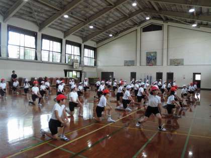 運動会に向けて、いよいよ取組開始です。リズムダンスに取り組みました。