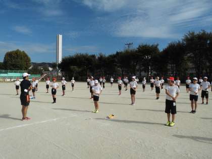 今日は運動場での練習です。自分の位置の確認をしました。集中してよく頑張っていました。