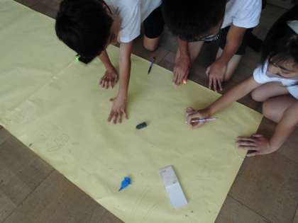 10月の目標を作成しています。5年生と6年生が協力して取り組んでいます。