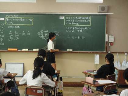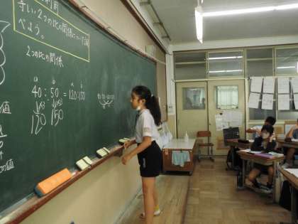 2つの比はどのような関係になっているのか調べました。今までの学習を活かして取り組み、発表していました。