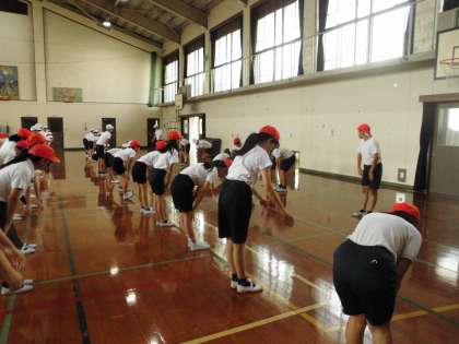 準備体操をしてい進めています。自分たちで学習をはじめられるように取り組んでいます。さすがですね。