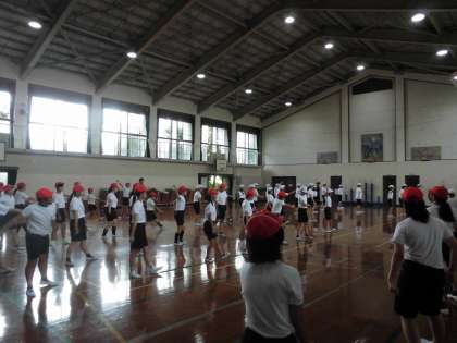 運動会の全校ダンスの練習です。ダンスリーダーが中心になって進めています。いいね!