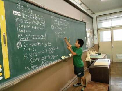 算数の授業で重さの計算をしました。重さの授業では初めて計算をするため,たくさんの子どもたちが考えながら発表していました。