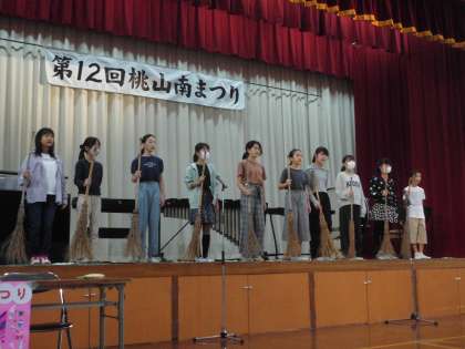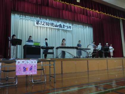 桃山南祭が無事開催されました。オープニングでは音楽部の皆さんが素敵な「威風堂々」の合奏、「やさしさに包まれたなら」「夢をかなえてドラえもん」の合唱がありました。テーマに沿った道具も準備され、見ている人たちは笑顔になりました。音楽部の皆さん、楽しませてくれてありがとうございました。