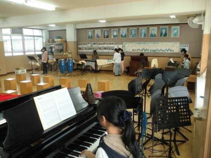 楽器ごとに分かれて練習です。真剣に取り組んでいますね。