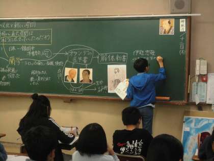 資料から、蘭学はどのように広がっていったのかを調べました。それを上手に発表していました。