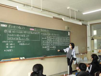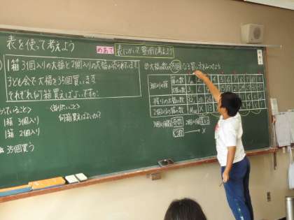 表を使って考えよう(1)の学習です。表に書いて問題を整理して考えたことを説明しています。