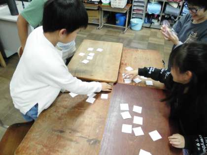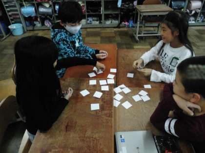 SDGsの学習でSDGs神経衰弱というものを作りました。班でやってみたところ大盛り上がりでした。また、とった番号は、2番で飢餓をなくそうのやつやった!今度調べてみる」と興味を持つきっかけにもなっていました。