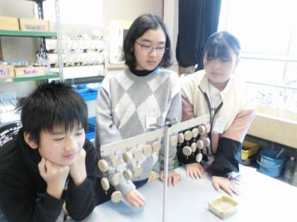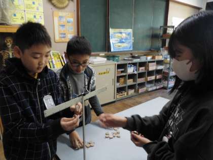 「てこのはたらき」の学習です。実験用のてこを使って腕のかたむきを調べたり、おもりを使ってどこにどのようにつければつり合うのかを調べました。