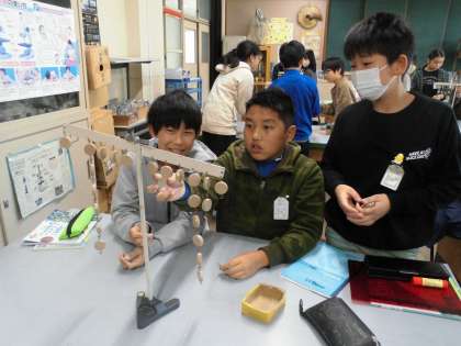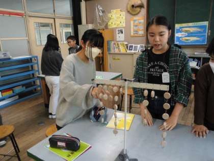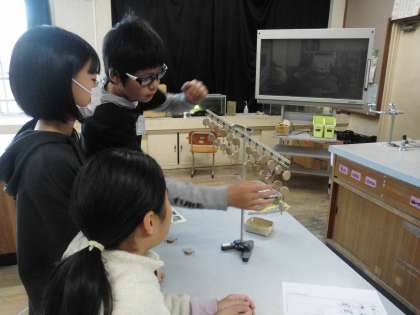 グループで話し合いながら、一つ一つ確かめながら、釣り合う場所を探しています。
