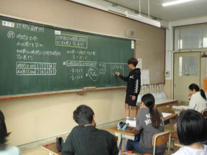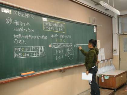 「比例と反比例」の学習です。自分の考えをみんなに説明しました。