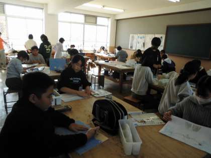 版画、頑張っています。仕上がりが楽しみです。