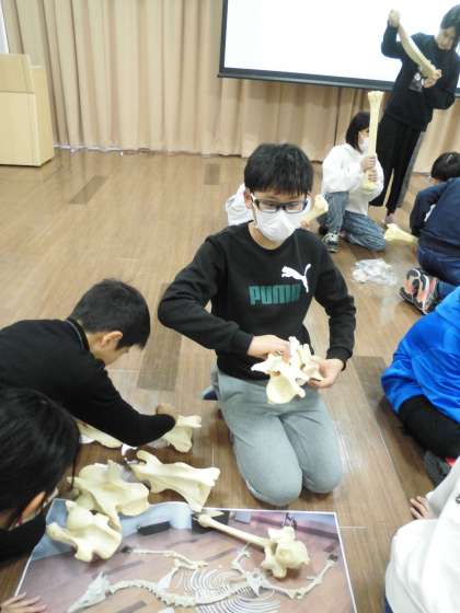 様々な形の骨です。不思議な形をしています。人間の体だとどこの骨になるのかな?