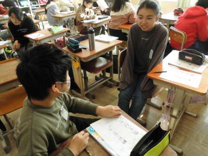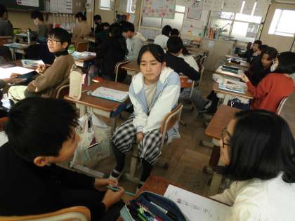 「思い出に残る行事を伝え合おう」の学習です。お互いに質問して答える練習をしました。