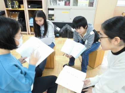 「花」と「箱根八里」の曲を聴き比べて気が付いたことを話し合いました。