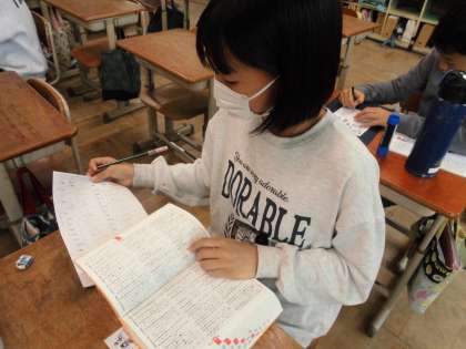 「漢字の広場」の学習です。わからない言葉の意味を調べながら文章を作っています。