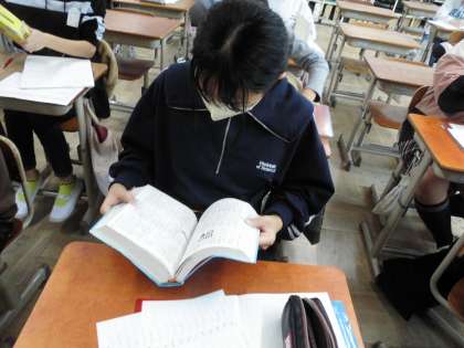 言葉の意味を一つ一つ調べています。進んで辞書を引く姿!さすがです。たくさんの言葉と出会っていってほしいですね。