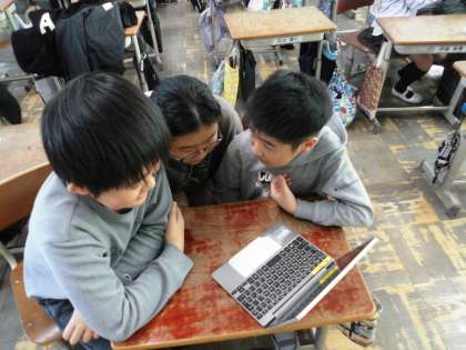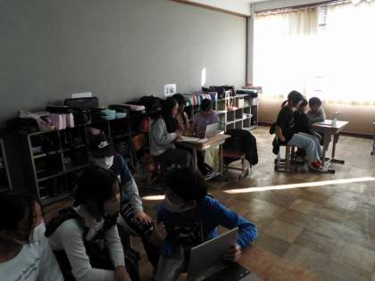 桃山東小学校と交流をしました。タブレットの画面越しに、すっかり仲良くなりました。質疑・応答などたくさんコミュニケーションがとれました。