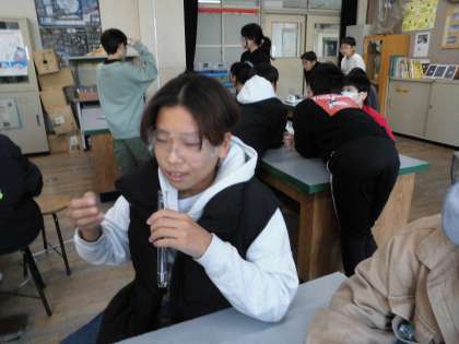 試験管の中の水溶液を今までに学習してきたことを使って調べることにチャレンジです。さぁ、わかるかな?