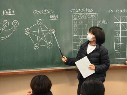 「場合を順序よく調べて」の学習です。どのように考えたのかをみんなに説明しています。