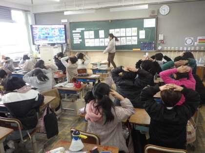 建物や場所の名前を復唱しながら、消しゴム取りゲームをしました。