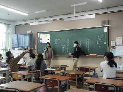 児童会本部です。2月の目標や今後の活動について話し合っています。良い学校にするためにみんな真剣です。