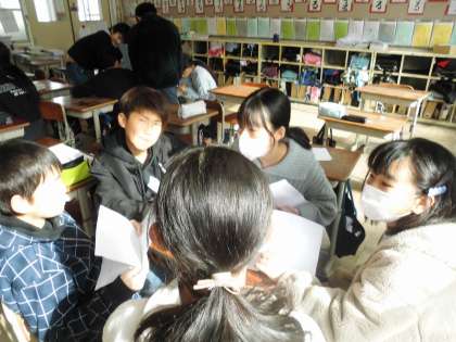 明日は去年に延期になっていた「たてわり活動」があります。グループに分かれて最終確認をしました。明日が楽しみですね。