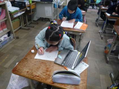 国語科の「カンジー博士の音訓カルタ」の学習で