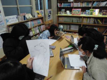 アート部です。パソコンを使ってお気に入りのイラストを描いています。
