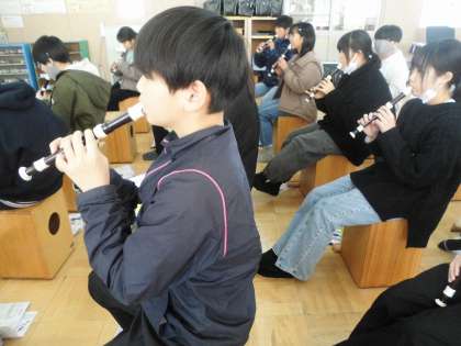 『越天楽』をリコーダーで練習しました。指の動きをしっかりと確かめて取り組みました。