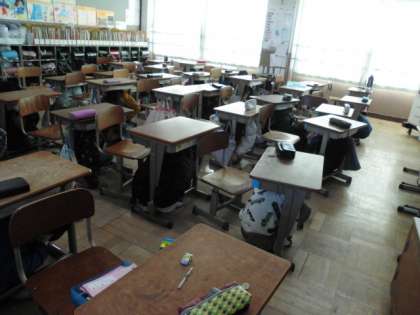 教室で避難のポイントについて話し合いをしました。