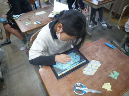 同じ大きさの正三角形を敷き詰めた模様の中から