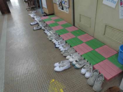 今日は身体計測でした。保健室前の上靴の並び方、お見事ですね。さすがです!