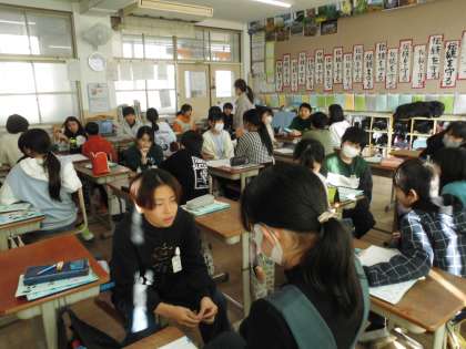 なりたい職業を伝え合おうの学習です。友だちとの会話、とっても楽しそうです。