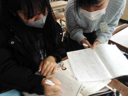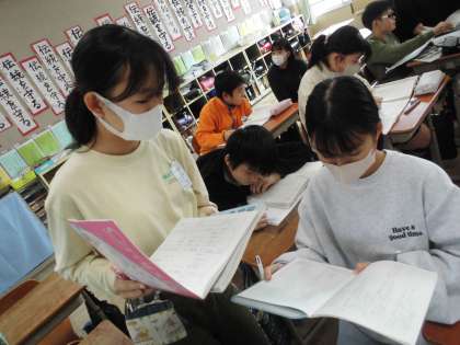「メディアと人間社会」の学習です。文章構成と内容をまとめ、互いに交流しました。