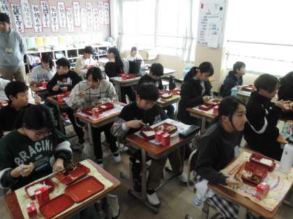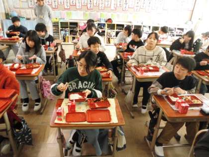 今日は中学校の給食を試食しました。初めての中学校の給食!おいしくいただきました。