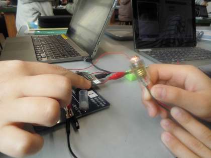 プログラミングを使ってLEDを光らせました。