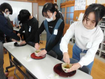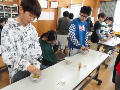 なかなかうまくたてられない!そんな時は女性会の方が助けてくださいました。お湯が冷めないうちにたてないといけないそうです。