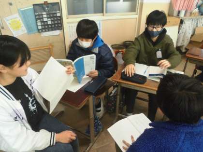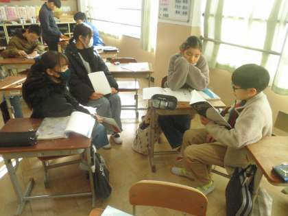 「人を引きつける表現の」学習で、自分の心を引きつける表現を教科書から見つけ、それぞれどんな工夫や効果があるのか、自分はどう思ったのかを書きました。交流では素晴らしい発表が多く見られました。