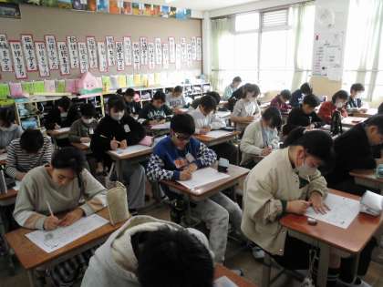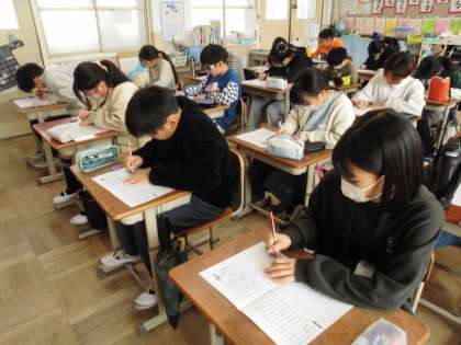 今日は視写の日。姿勢を意識して丁寧に書き写しています。素晴らしい集中力です。