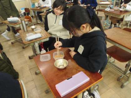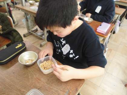 毎年恒例の豆つまみをしました。さすが6年生、持ち方が美しい!おかげでスイスイと豆をつまむことができていました。