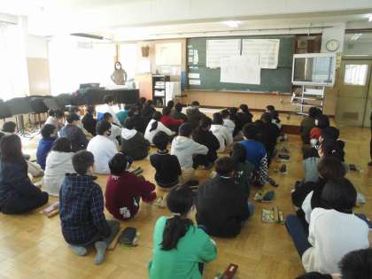 6年生送る会のために合同で取り組みました。きれいな歌声とリコーダーの音色が響いていました。