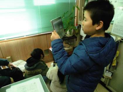 国語の授業で「私たちのがっこうじまん」をしています。桃山南小学校を知らない人に自慢するなら何がいいか班で話し合って、スピーチの原稿を考えたり資料集めをしたりしていました。