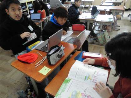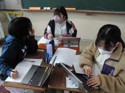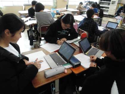 調べ学習の続きです。グループごとに決めたテーマに沿って協力して調べていました。