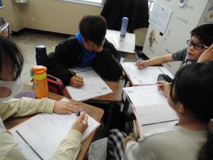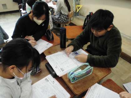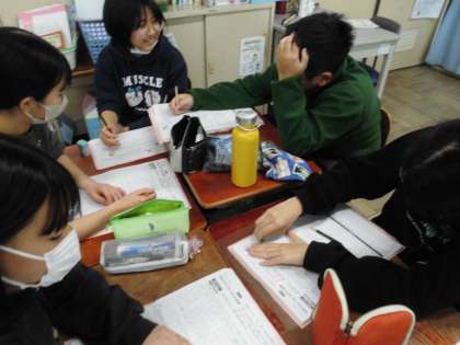 調理実習を振り返りました。よく頑張ったね。
