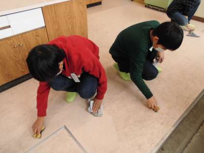 昨日に使用した家庭科室を今日改めて掃除しました。ありがとう。