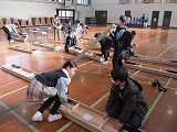 半日入学で使った長椅子を4年生が片づけました。