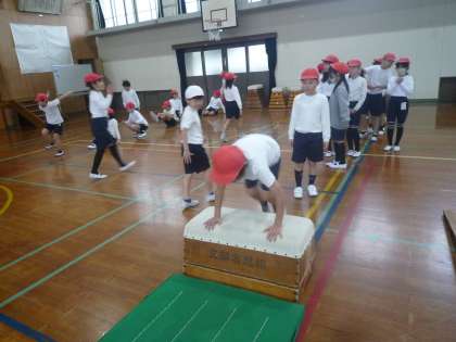 体育科では「跳び箱」の学習をしています。